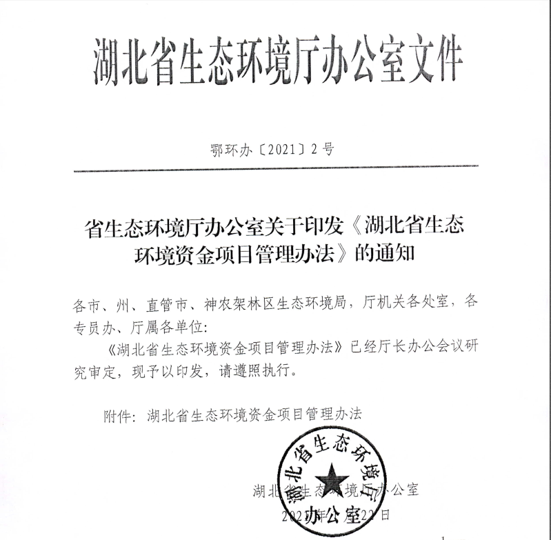 关于印发《湖北省生态环境资金项目管理办法》的通知
